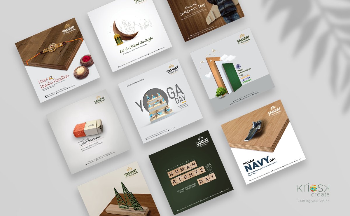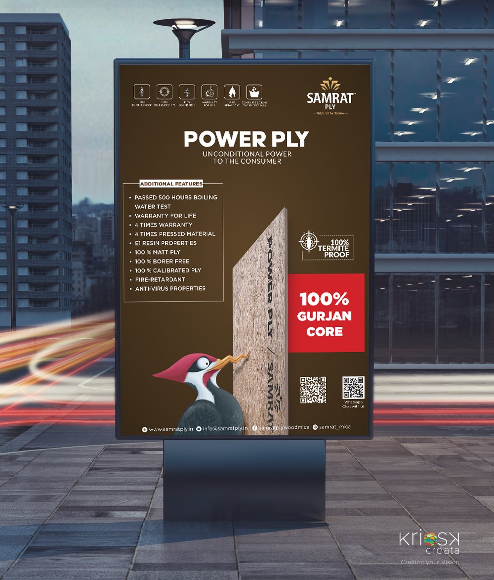Samrat ply was founded in 1988 and has been delivering the finest quality of ply, laminates and cladding pan India since then. Kriosk creata is associated with the brand for more than a year now and been a reason to a phenomenon unexpected ever.